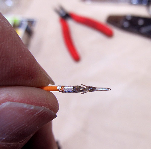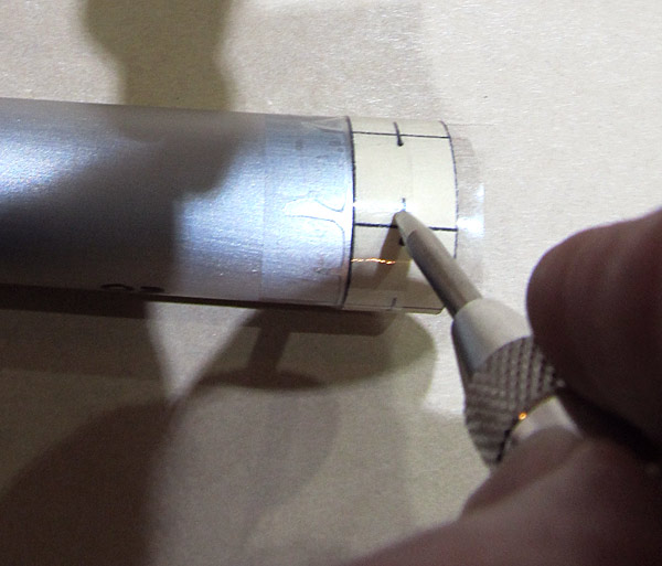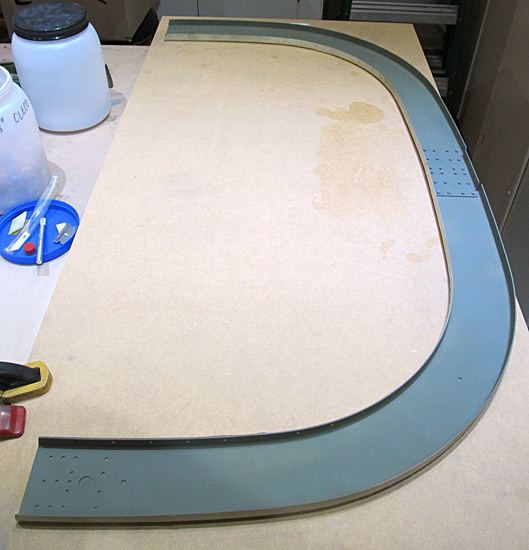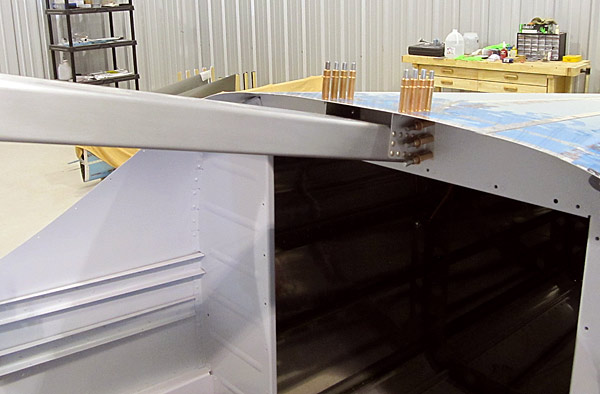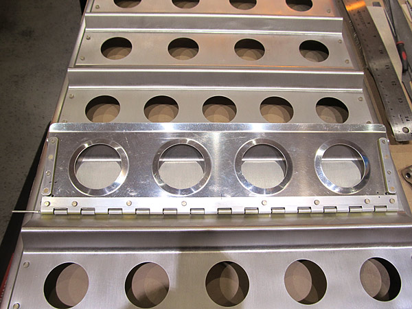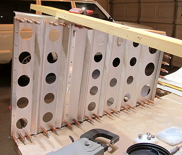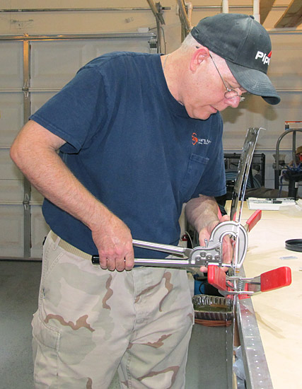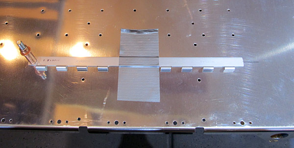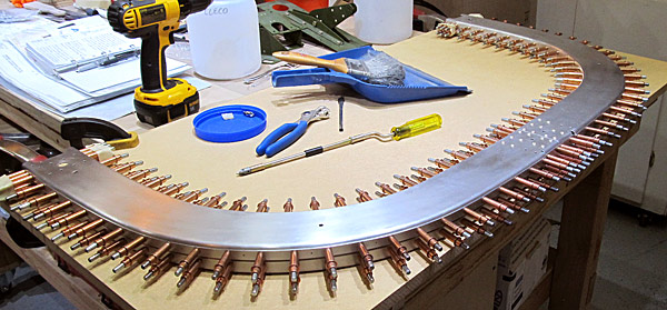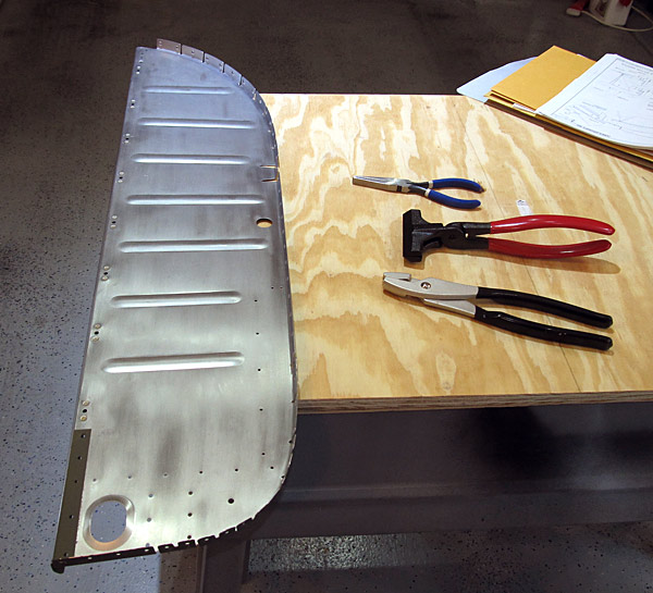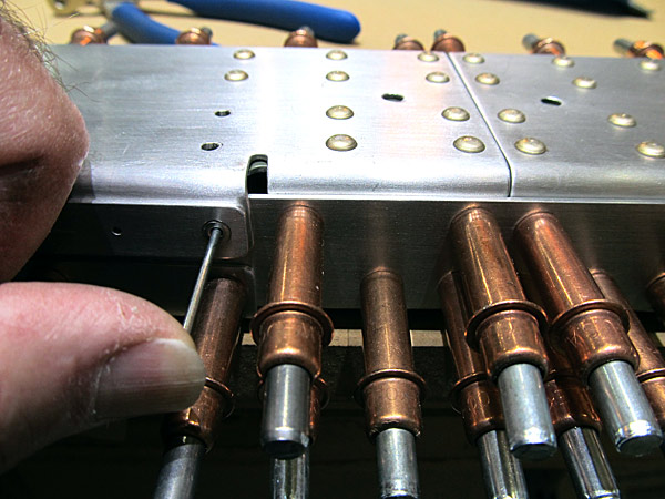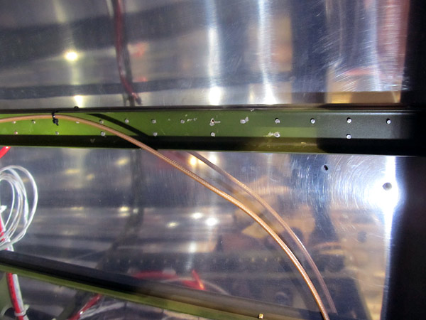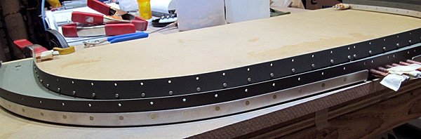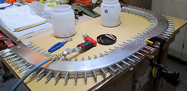 Two rivets set, 34 more to go! Each end receives six rivets.