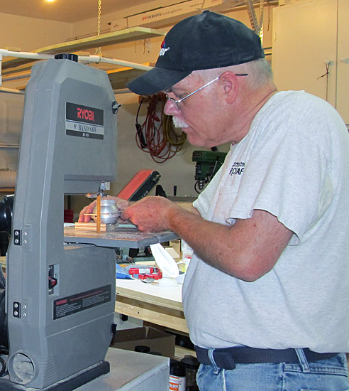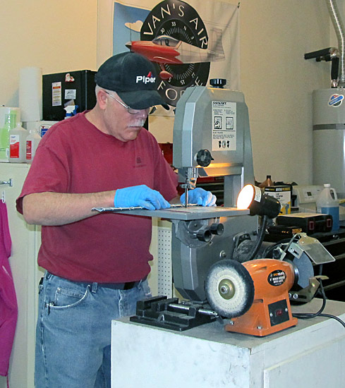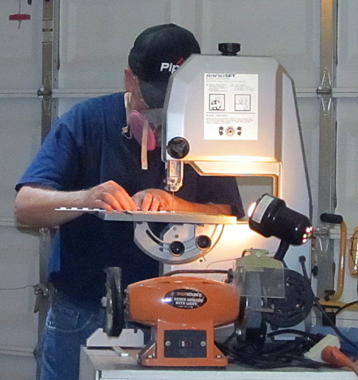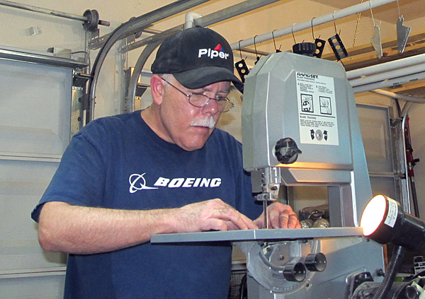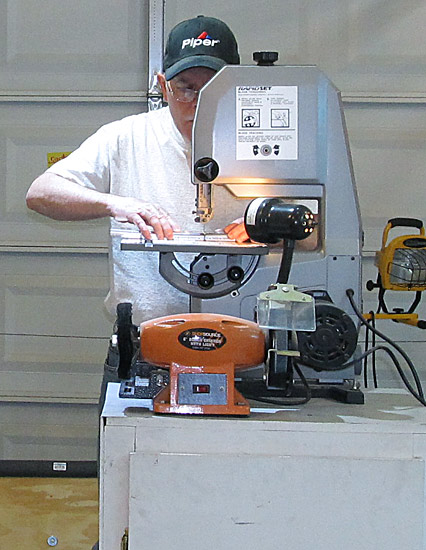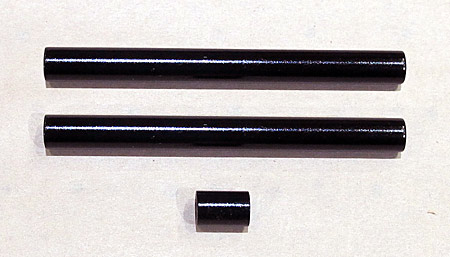 The two push rods created are 3 1/4" in length and will be labled (CS-00017) for the pitch control rod, (CS-00019) for the roll control rod, and (CS-00020) for the roll servo standoff, (which is 15/32" long). I cut these out using the bandsaw and then squared the ends using a stationary disc sander. The ends were deburred as well.