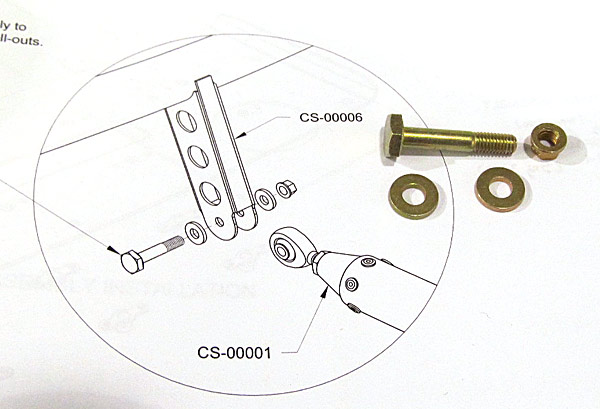 Basically, the (CS-00001) forward elevator pushrod and the (CS-00002) mid elevator pushrod receive two AN316-4R jam nuts and two M3414M rod end bearings each. The (CS-00003) aft elevator pushrod receives two AN316-6R jam nuts and two MD3616M end bearings.